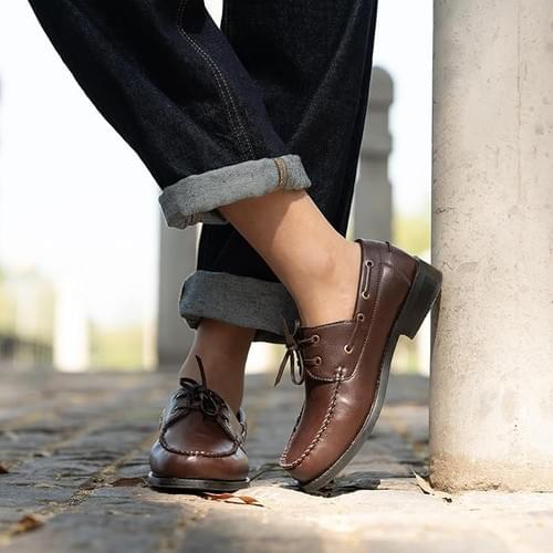 Theater Women Sinatras Leather Lace-Up Loafers | Vintage Oxford Inspired Shoes with Handmade Stitchi