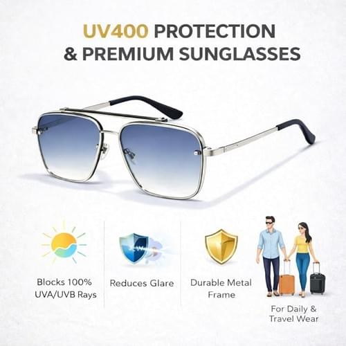 Dervin UV Protected Driving Pilot Gradient Square Metal Body Sunglasses for Men and Women